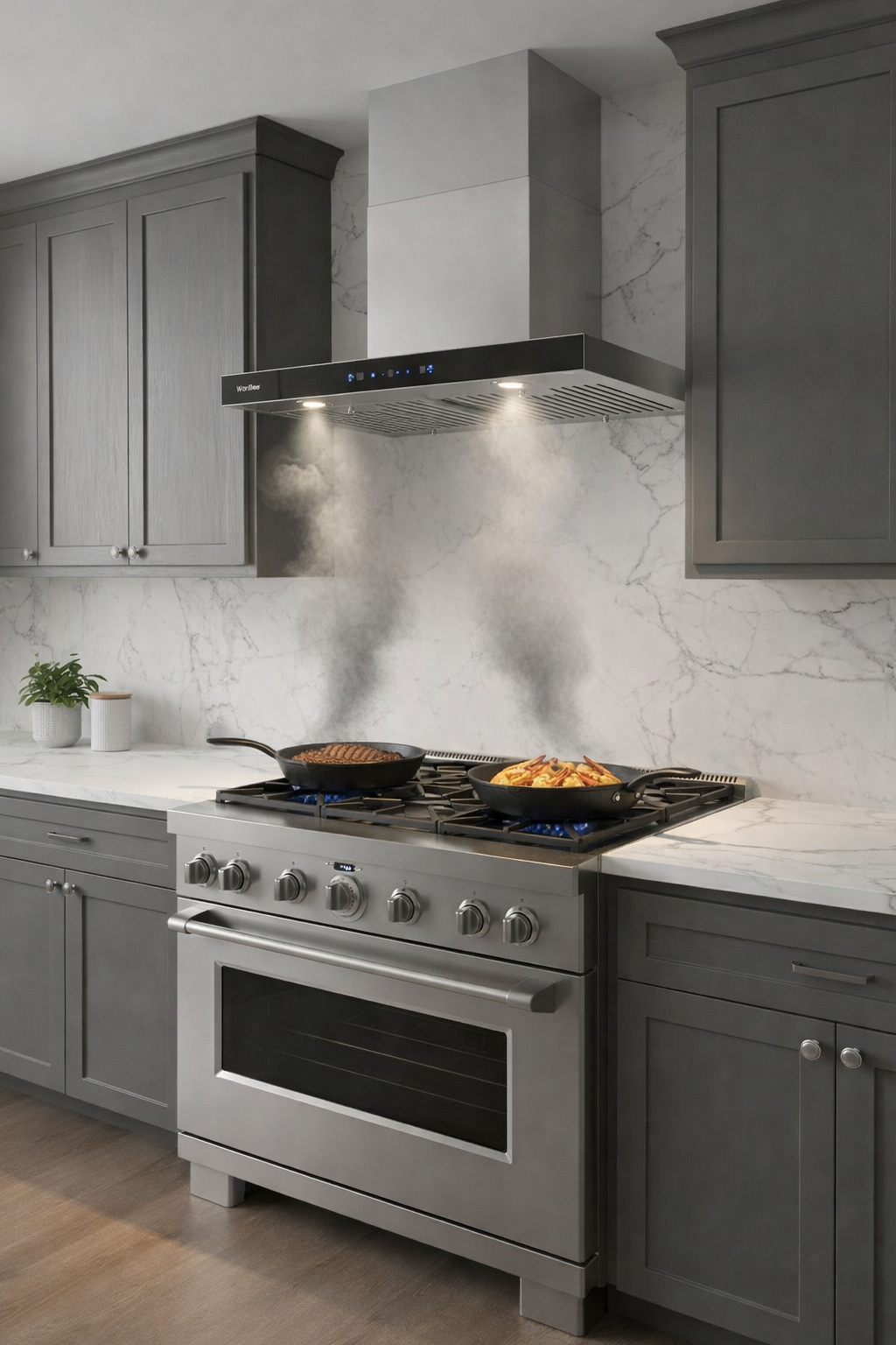 Designed for modern kitchens, this range hood combines flexible installation, durable steel construction, and smart touch controls. With 800 CFM of strong airflow and auto-clean technology, it swiftly removes smoke and grease for fresher air and easier maintenance. Carbon filtration and dishwasher-safe filters ensure long-lasting cleanliness, quiet performance, and effortless everyday use.